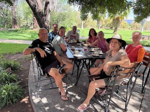 Zum Schluß noch ein paar Bilder von der kurzen Zeit die wir zusammen mit den meisten der Reisenden vor und nach dem Aufenthalt in der Schule hatten: Ein wenig Tjiri Lodge, Waterberg (mit Geschichts- und Geologie-Unterricht von Floyd), Mount Etjo Lodge (mit sehr interessanten Hintergrundinformationen von Carola zur Lodge und was es bedeutet sich für den Erhalt der Tiere im südlichen Afrika einzusetzen) und ein paar Bilder auf der Fahrt durchs Land. Ottenhofen, Dezember 2025 Thomas Hameter & das Team von Outjenaho-strahlende Kinderaugen e.V.